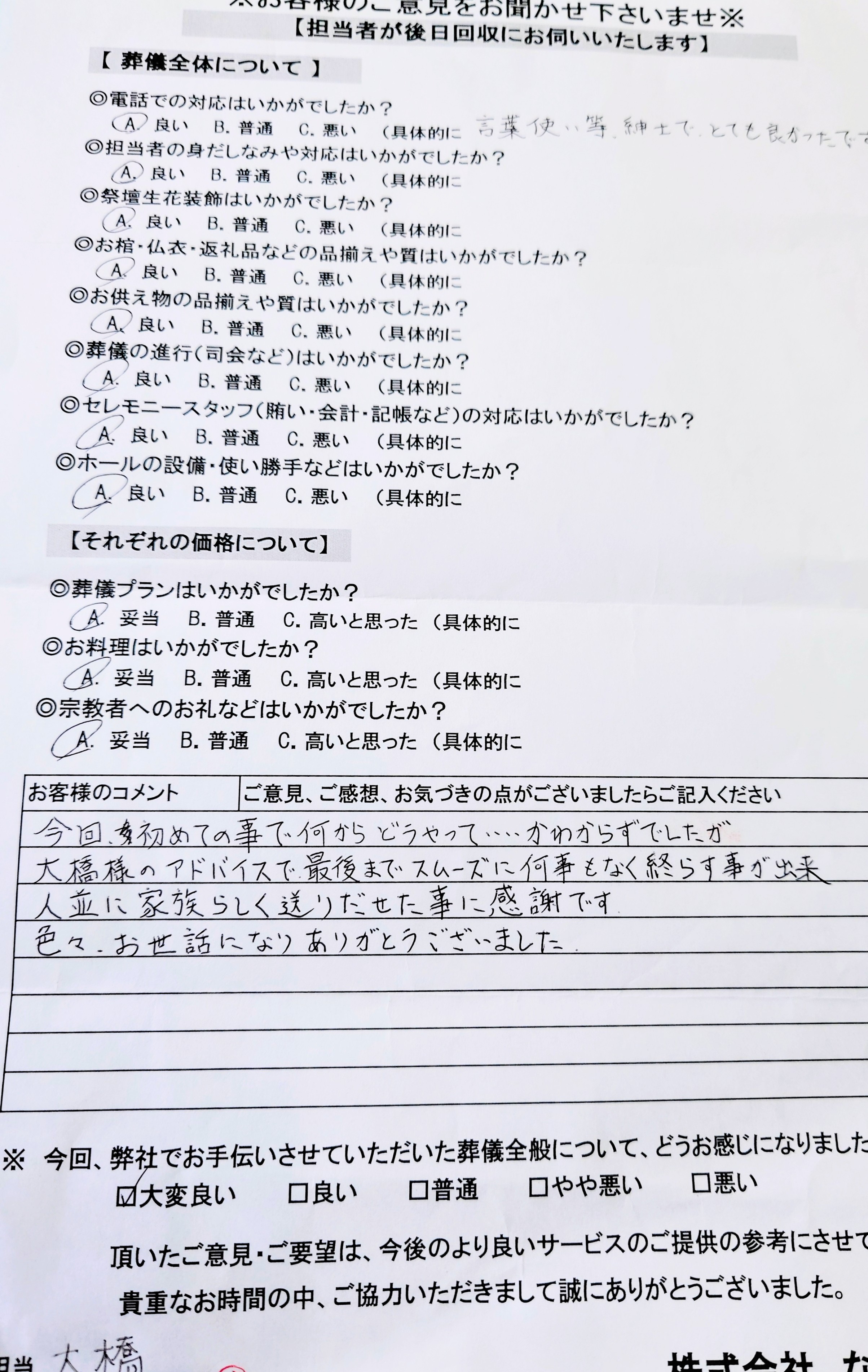 さて この度葬儀を終えたご家族様からの声をご紹介致します